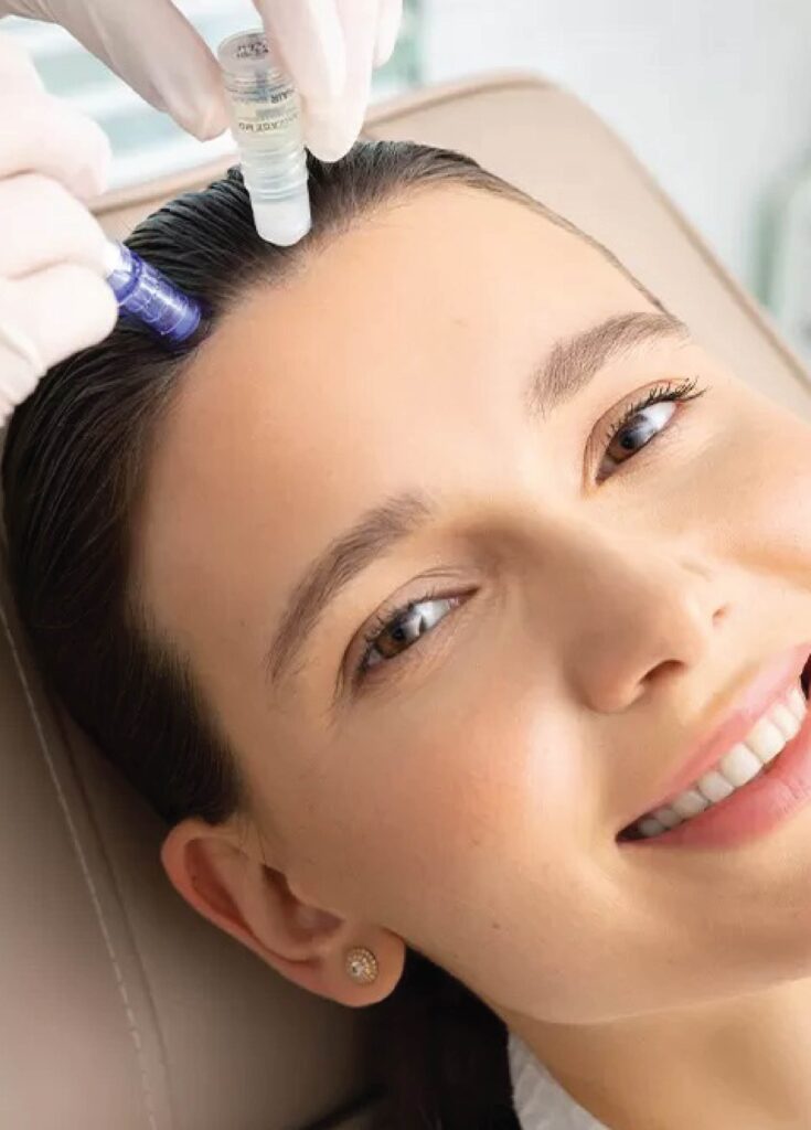 It’s a topical regenerative serum containing stem cell-derived growth factors and cytokines that help improve scalp health, awaken hair follicles, and stimulate new hair growth through non-invasive, drug-free treatment.